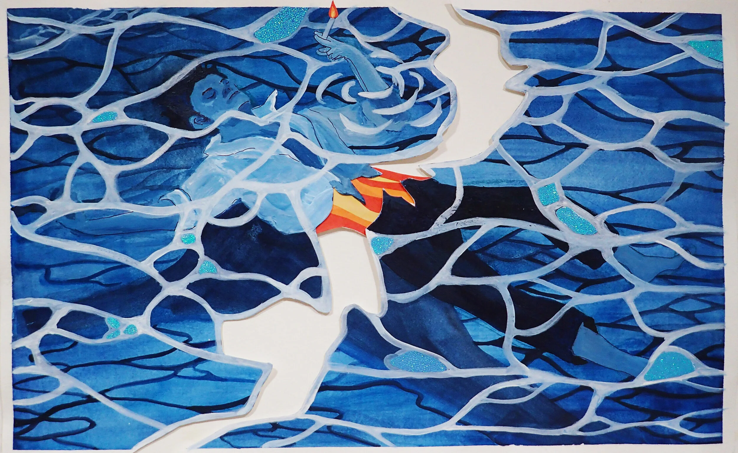 State of Blue / 8 x 6 inches / Watercolour Paper, Gouache, Acrylic Paint, Graphite, Origami, Paper, Glue, Mod Podge