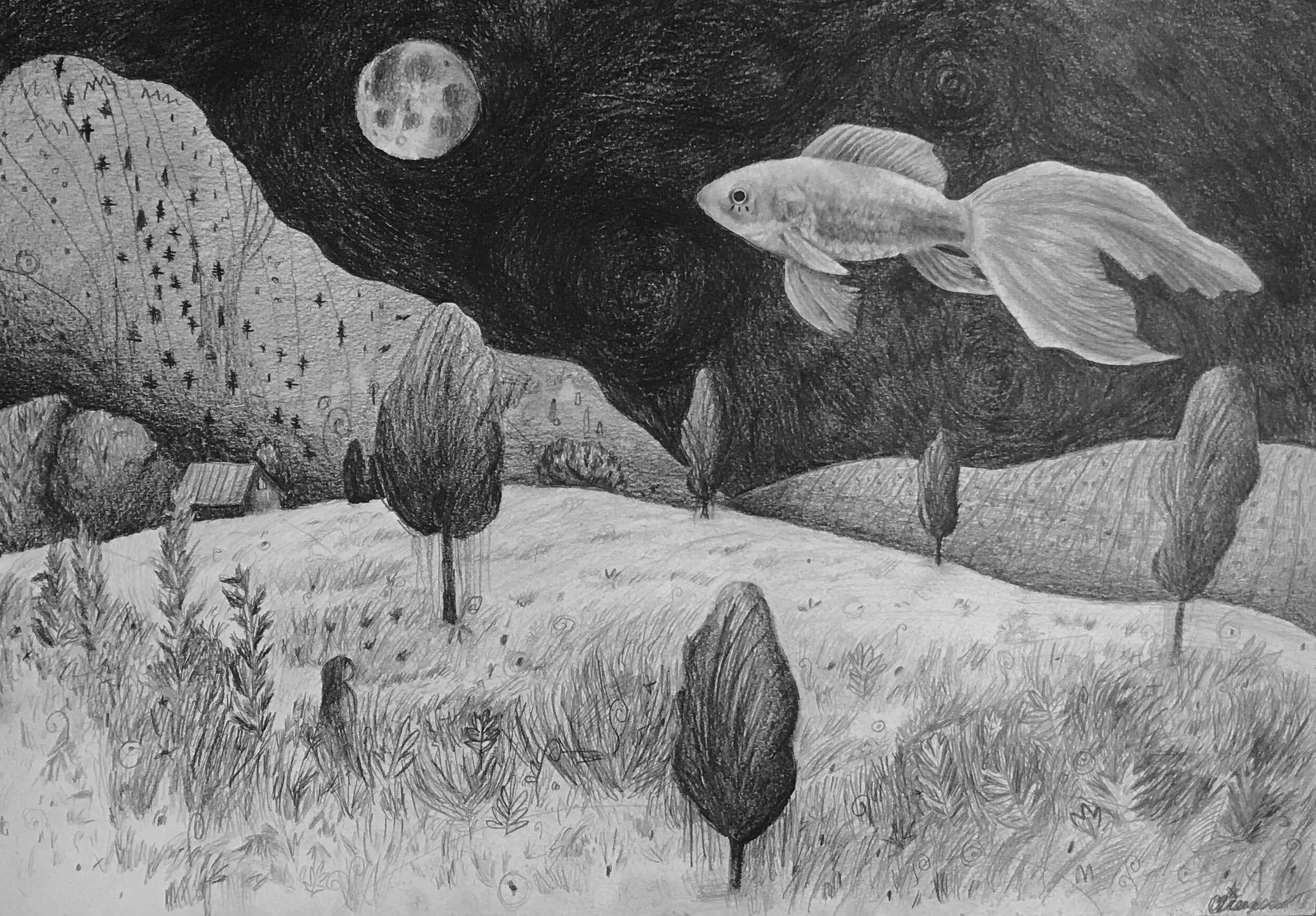"Tea Time" / 18 in x 24 in / Graphite pencils, soft pastel charcoal, ruler, eraser